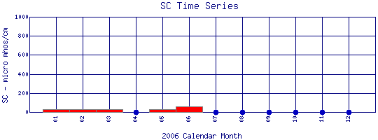 Specific Conductance Time Series for 2006 Silver Lake Pipe outfall in Lakewood Reservoir |