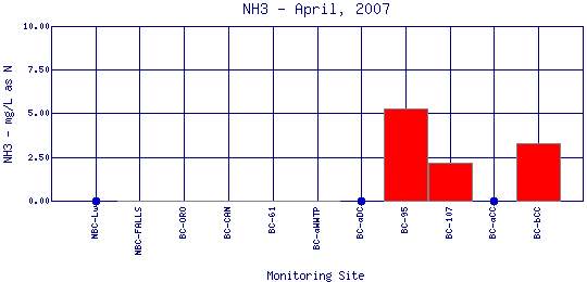 The above map indicates water quality monitoring sites. To view data at a specific site select it from the map with the mouse.