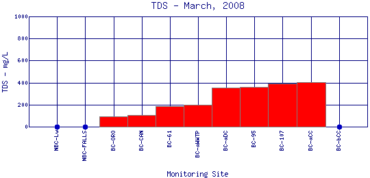 Longitudinal Total Dissolved Solids Profiles for March, 2008