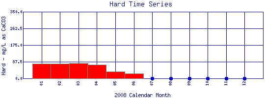 Total Hardness Time Series for 2008 North Beaver Creek @ Middle Boulder Creek |