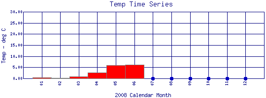 Water Temperature Time Series for 2008 Como Creek where it enters Lakewood Res. |