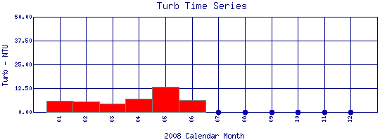 Turbidity Time Series for 2008 Como Creek where it enters Lakewood Res. |