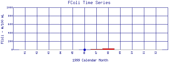 Fecal Coliform Time Series for 1999 Como Creek where it enters Lakewood Res. |