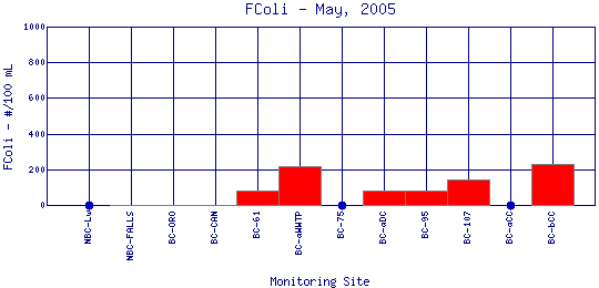 Longitudinal Fecal Coliform Profiles for May, 2005