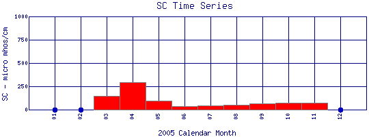 Specific Conductance Time Series for 2005 Boulder Creek at Orodell |