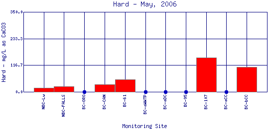 Hardness generally refers to the amount of calcium and magnesium in water. In household use, these cations (ions with a charge greater than +1) can prevent soap from sudsing and leave behind a white scum in bathtubs. In the aquatic environment, calcium and magnesium help keep fish from absorbing metals, such as lead, arsenic, and cadmium, into their bloodstream through their gills. Therefore, the harder the water, the less easy it is for toxic metals to absorb onto gills. Water in the Boulder Creek watershed is generally soft because the water comes mainly from melting snow which is low in minerals and metals.