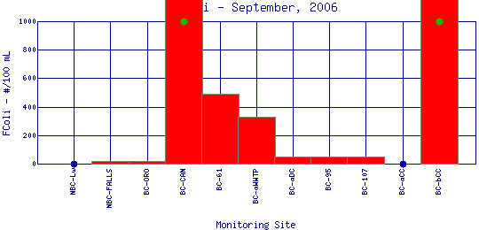 Longitudinal Fecal Coliform Profiles for September, 2006