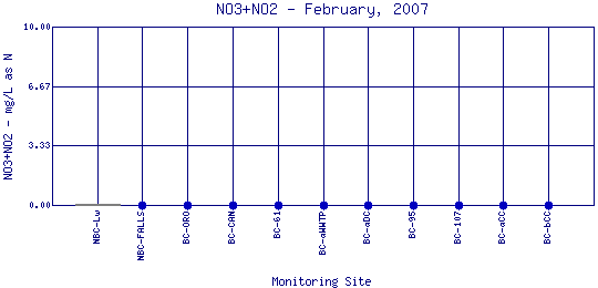 Longitudinal Nitrate + Nitrite Profiles for February, 2007