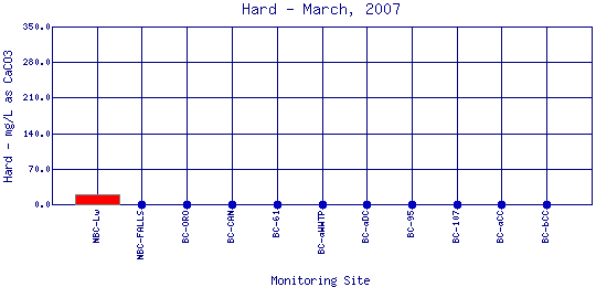 Hardness generally refers to the amount of calcium and magnesium in water. In household use, these cations (ions with a charge greater than +1) can prevent soap from sudsing and leave behind a white scum in bathtubs. In the aquatic environment, calcium and magnesium help keep fish from absorbing metals, such as lead, arsenic, and cadmium, into their bloodstream through their gills. Therefore, the harder the water, the less easy it is for toxic metals to absorb onto gills. Water in the Boulder Creek watershed is generally soft because the water comes mainly from melting snow which is low in minerals and metals.