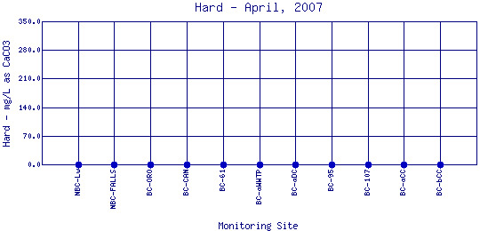 The above map indicates water quality monitoring sites. To view data at a specific site select it from the map with the mouse.