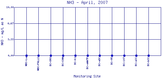 The above map indicates water quality monitoring sites. To view data at a specific site select it from the map with the mouse.