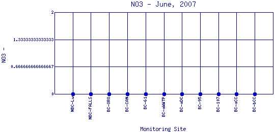 The above map indicates water quality monitoring sites. To view data at a specific site select it from the map with the mouse.