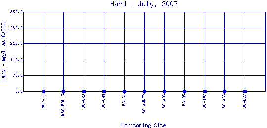 The above map indicates water quality monitoring sites. To view data at a specific site select it from the map with the mouse.
