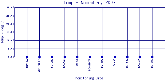 The above map indicates water quality monitoring sites. To view data at a specific site select it from the map with the mouse.