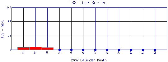 Select on the parameter name to view all Total Suspended Solids time series plots on the basin map. Select on the table date to view stream Total Suspended Solids profiles observed on that date. Select here to view all parameters at this site.