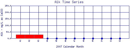 Select on the parameter name to view all Total Alkalinity time series plots on the basin map. Select on the table date to view stream Total Alkalinity profiles observed on that date. Select here to view all parameters at this site.