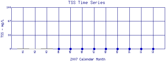 Select on the parameter name to view all Total Suspended Solids time series plots on the basin map. Select on the table date to view stream Total Suspended Solids profiles observed on that date. Select here to view all parameters at this site.
