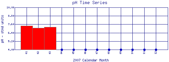 Select on the parameter name to view all pH time series plots on the basin map. Select on the table date to view stream pH profiles observed on that date. Select here to view all parameters at this site.