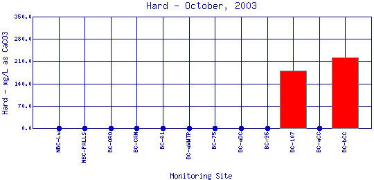Hardness generally refers to the amount of calcium and magnesium in water. In household use, these cations (ions with a charge greater than +1) can prevent soap from sudsing and leave behind a white scum in bathtubs. In the aquatic environment, calcium and magnesium help keep fish from absorbing metals, such as lead, arsenic, and cadmium, into their bloodstream through their gills. Therefore, the harder the water, the less easy it is for toxic metals to absorb onto gills. Water in the Boulder Creek watershed is generally soft because the water comes mainly from melting snow which is low in minerals and metals.