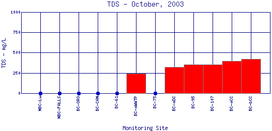 Longitudinal Total Dissolved Solids Profiles for October, 2003