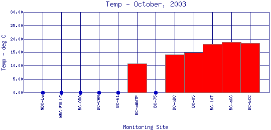 The above map indicates water quality monitoring sites. To view data at a specific site select it from the map with the mouse.