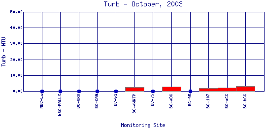 Turbidity is a measure of the cloudiness of the water. Cloudiness is caused by suspended solids or organic matter including silt, microorganisms, plant fibers, sawdust chemicals and coal dust. High levels of turbidity can block light from reaching submerged aquatic vegetation and can raise surface water temperatures because the suspended particles absorb heat from sunlight. The most frequent causes of turbidity are from logging, road and building construction, and mining activity. Turbidity affects fish by decreasing light penetration thus reducing the amount of photosynthesis taking place in the water. This reduces the amount of oxygen available to fish. Large amounts of suspended solids can also clog fish gills, and it affects their ability to see and catch foo