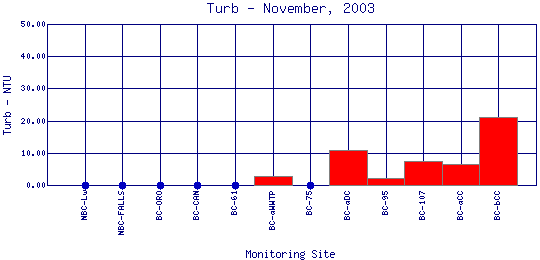 Turbidity is a measure of the cloudiness of the water. Cloudiness is caused by suspended solids or organic matter including silt, microorganisms, plant fibers, sawdust chemicals and coal dust. High levels of turbidity can block light from reaching submerged aquatic vegetation and can raise surface water temperatures because the suspended particles absorb heat from sunlight. The most frequent causes of turbidity are from logging, road and building construction, and mining activity. Turbidity affects fish by decreasing light penetration thus reducing the amount of photosynthesis taking place in the water. This reduces the amount of oxygen available to fish. Large amounts of suspended solids can also clog fish gills, and it affects their ability to see and catch foo