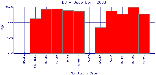 Longitudinal Dissolved Oxygen Profiles for December, 2003