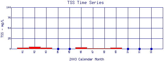Total Suspended Solids Time Series for 2003 North Beaver Creek @ Middle Boulder Creek |
