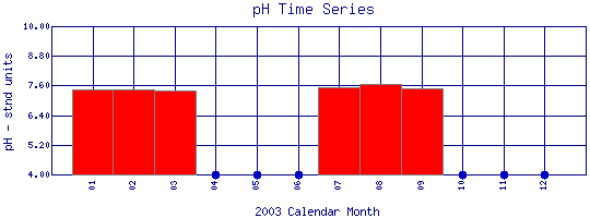 Select on the parameter name to view all pH time series plots on the basin map. Select on the table date to view stream pH profiles observed on that date. Select here to view all parameters at this site.
