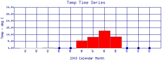 Water Temperature Time Series for 2003 Middle Boulder Creek at PSCo Weir |