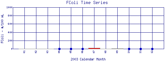 Fecal Coliform Time Series for 2003 North Boulder Creek diversion to Lakewood |
