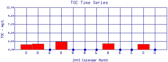 Total Organic Carbon Time Series for 2003 Silver Lake Pipe outfall in Lakewood Reservoir |