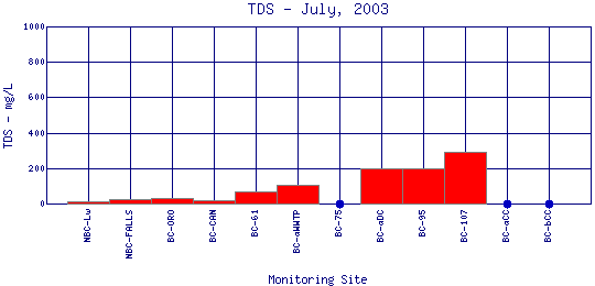 Longitudinal Total Dissolved Solids Profiles for July, 2003