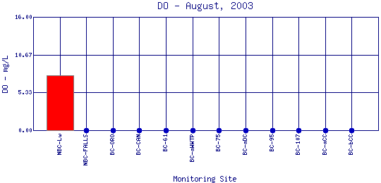 Longitudinal Dissolved Oxygen Profiles for August, 2003