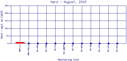 Hardness generally refers to the amount of calcium and magnesium in water. In household use, these cations (ions with a charge greater than +1) can prevent soap from sudsing and leave behind a white scum in bathtubs. In the aquatic environment, calcium and magnesium help keep fish from absorbing metals, such as lead, arsenic, and cadmium, into their bloodstream through their gills. Therefore, the harder the water, the less easy it is for toxic metals to absorb onto gills. Water in the Boulder Creek watershed is generally soft because the water comes mainly from melting snow which is low in minerals and metals.