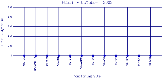 Longitudinal Fecal Coliform Profiles for October, 2003