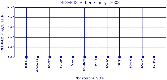 Longitudinal Nitrate + Nitrite Profiles for December, 2003