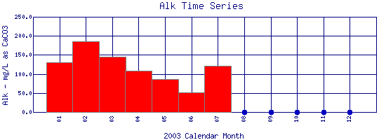 Total Alkalinity Time Series for 2003 Boulder Creek at 107th St |