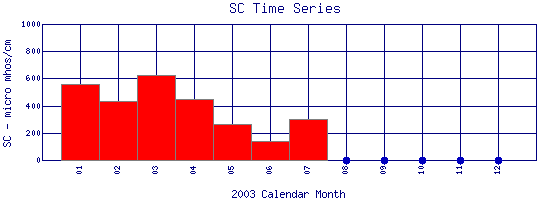 Specific Conductance Time Series for 2003 Boulder Creek at 107th St |