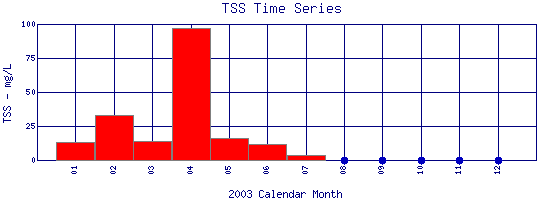 Total Suspended Solids Time Series for 2003 Boulder Creek at 107th St |