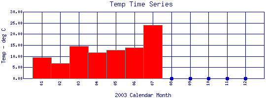 Water Temperature Time Series for 2003 Boulder Creek at 107th St |