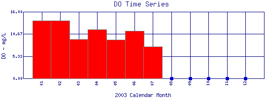 Dissolved Oxygen Time Series for 2003 Boulder Creek at 61st St. |