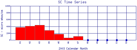 Specific Conductance Time Series for 2003 Boulder Creek at 61st St. |