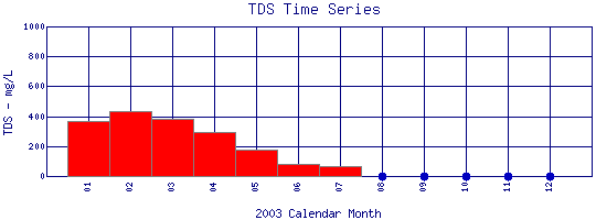 Total Dissolved Solids Time Series for 2003 Boulder Creek at 61st St. |