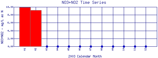 Select on the parameter name to view all Nitrate + Nitrite time series plots on the basin map. Select on the table date to view stream Nitrate + Nitrite profiles observed on that date. Select here to view all parameters at this site.