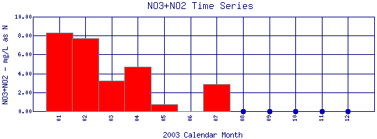 Nitrate + Nitrite Time Series for 2003 Boulder Creek at 95th St |