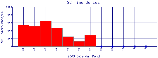 Specific Conductance Time Series for 2003 Boulder Creek at 95th St |