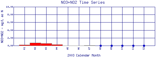 Nitrate + Nitrite Time Series for 2003 Boulder Creek at Eben G. Fine Park |