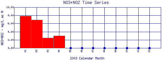 Nitrate + Nitrite Time Series for 2003 Boulder Creek Above Coal Creek |